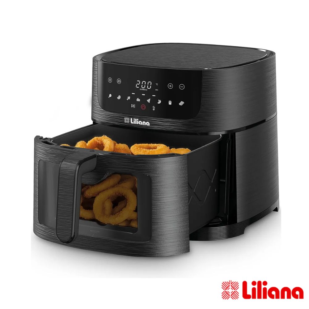 Freidora de aire digital con gran capacidad, diseñada para cocinar alimentos crocantes de manera más saludable.