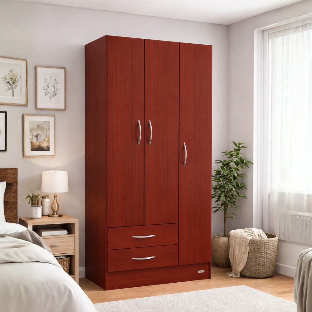 Incluye barral para colgado, 2 cajones y 3 estantes (2 fijos y 1 regulable).