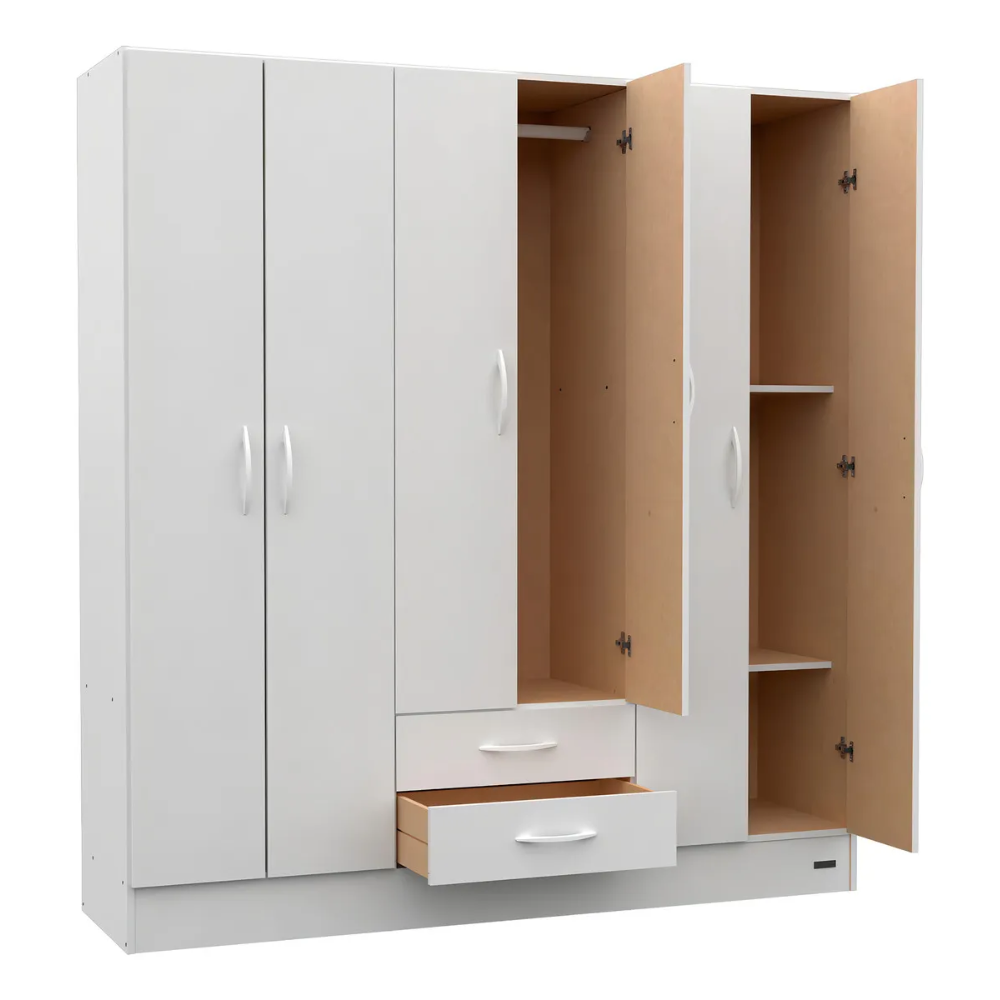 Incluye 2 espacios con barral para colgado, 2 cajones y 2 estantes.