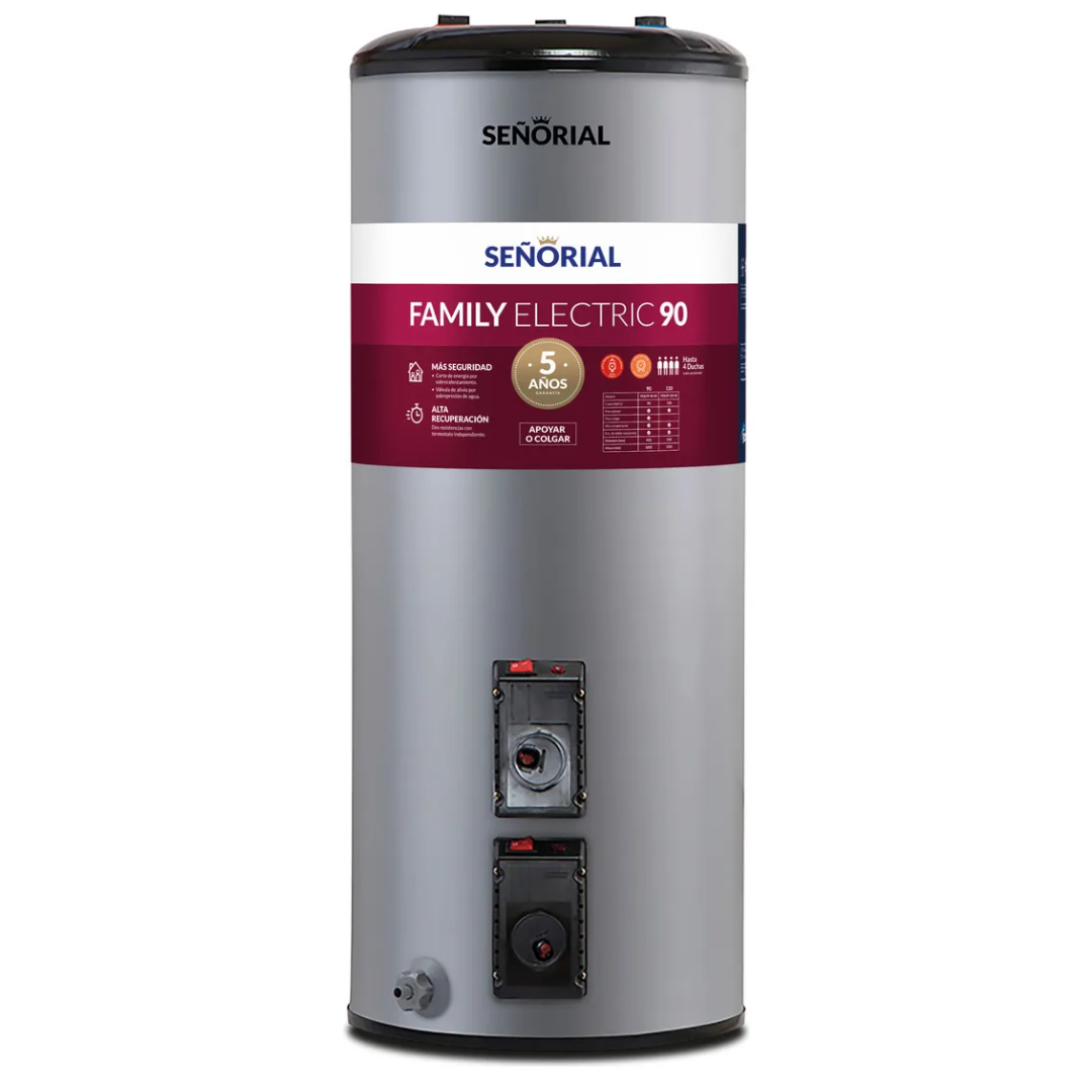 TERMOTANQUE SEÑORIAL ELECTRICO 90 LITROS LINEA FAMILY ALTA RECUPERACION