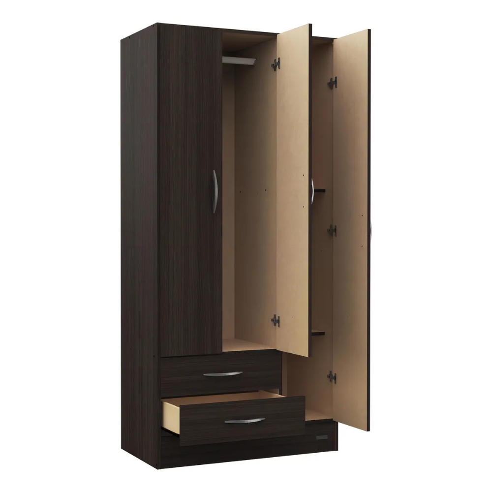 Incluye barral para colgado, 2 cajones y 3 estantes (2 fijos y 1 regulable).