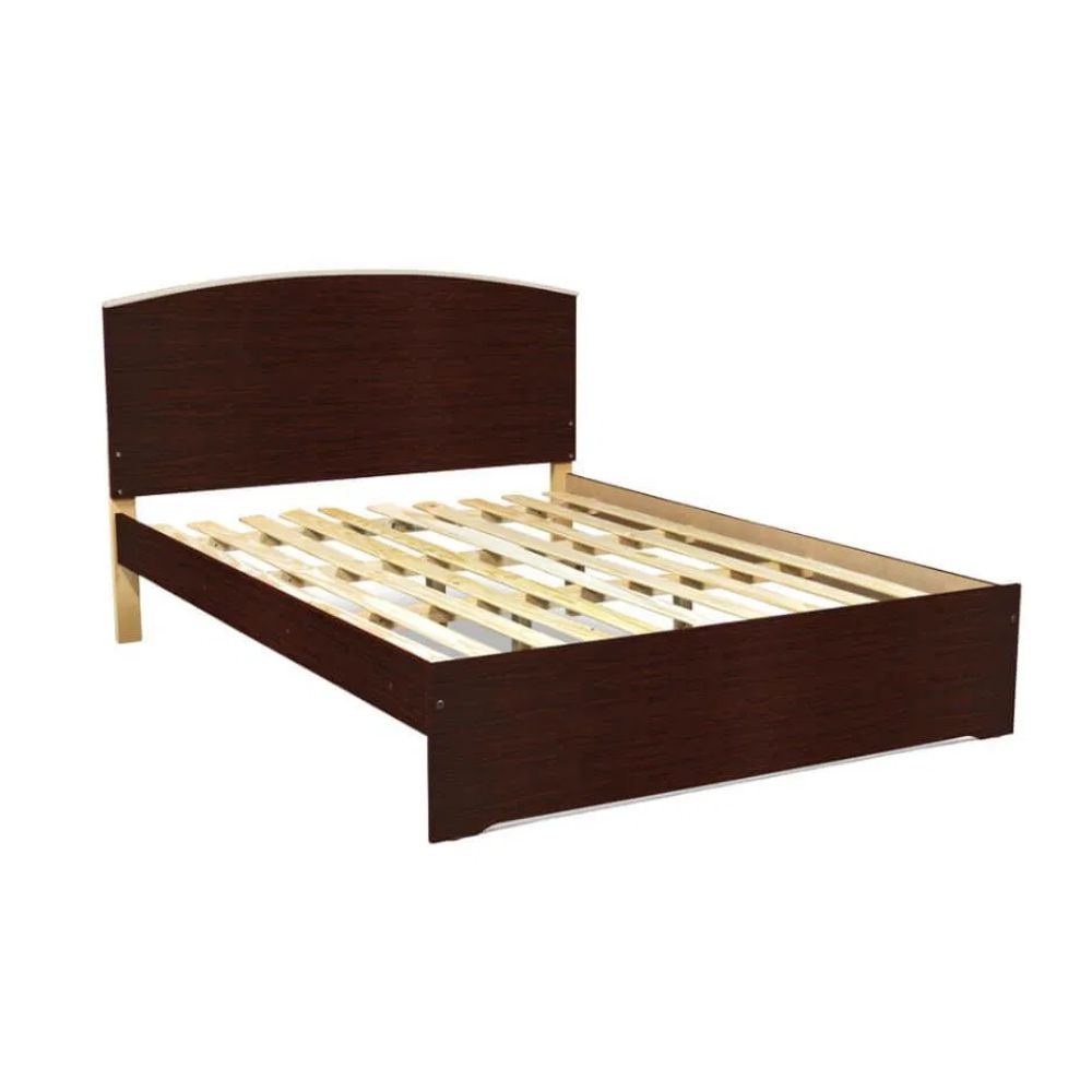 Cama de diseño moderno con respaldo tablero redondeado, ideal para completar tu dormitorio con estilo y comodidad.