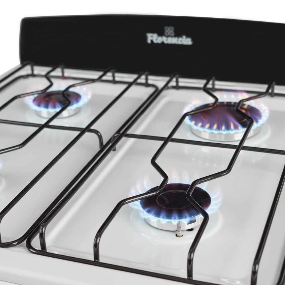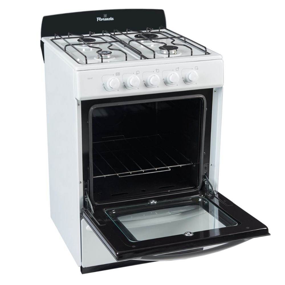 La cocina Florencia de 56 cm es una opción práctica para hogares que buscan 4 hornallas, horno con visor y fácil limpieza, con la ventaja de ser multigas para adaptarse a red o garrafa.