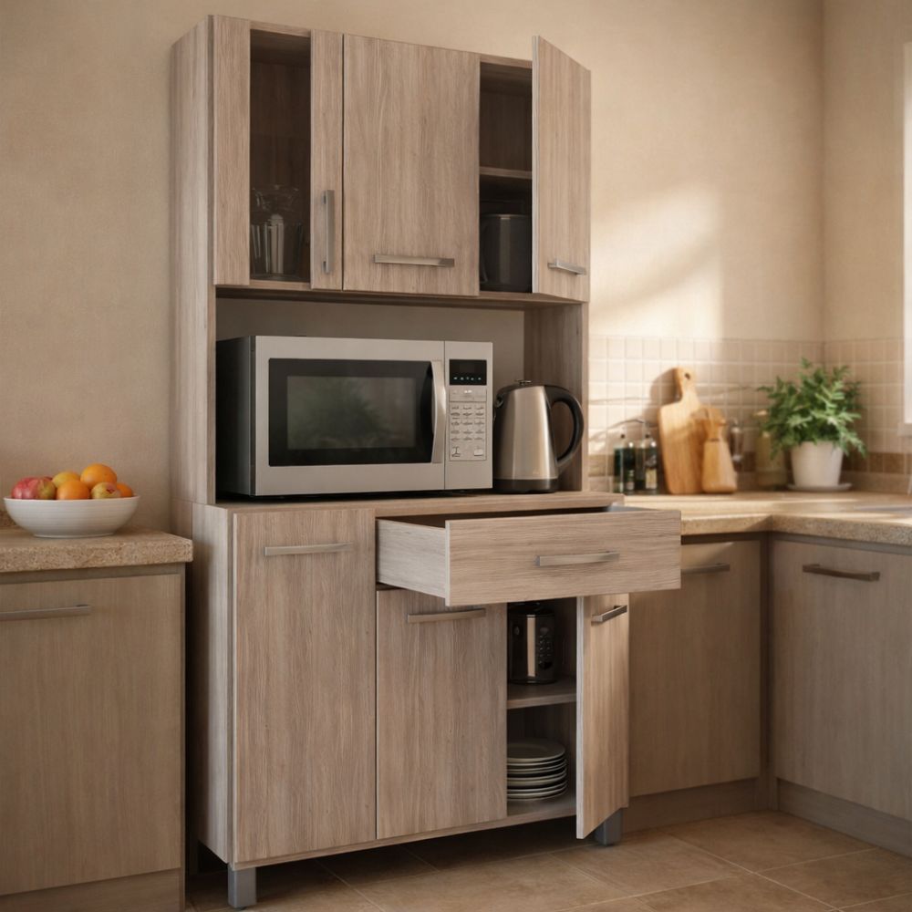 Gran capacidad en formato compacto para mantener la cocina ordenada ✨ Este aparador Orlandi de 0,90 m es ideal para guardar vajilla, alimentos y utensilios sin ocupar de más, con una estructura de melamina pensada para uso diario.