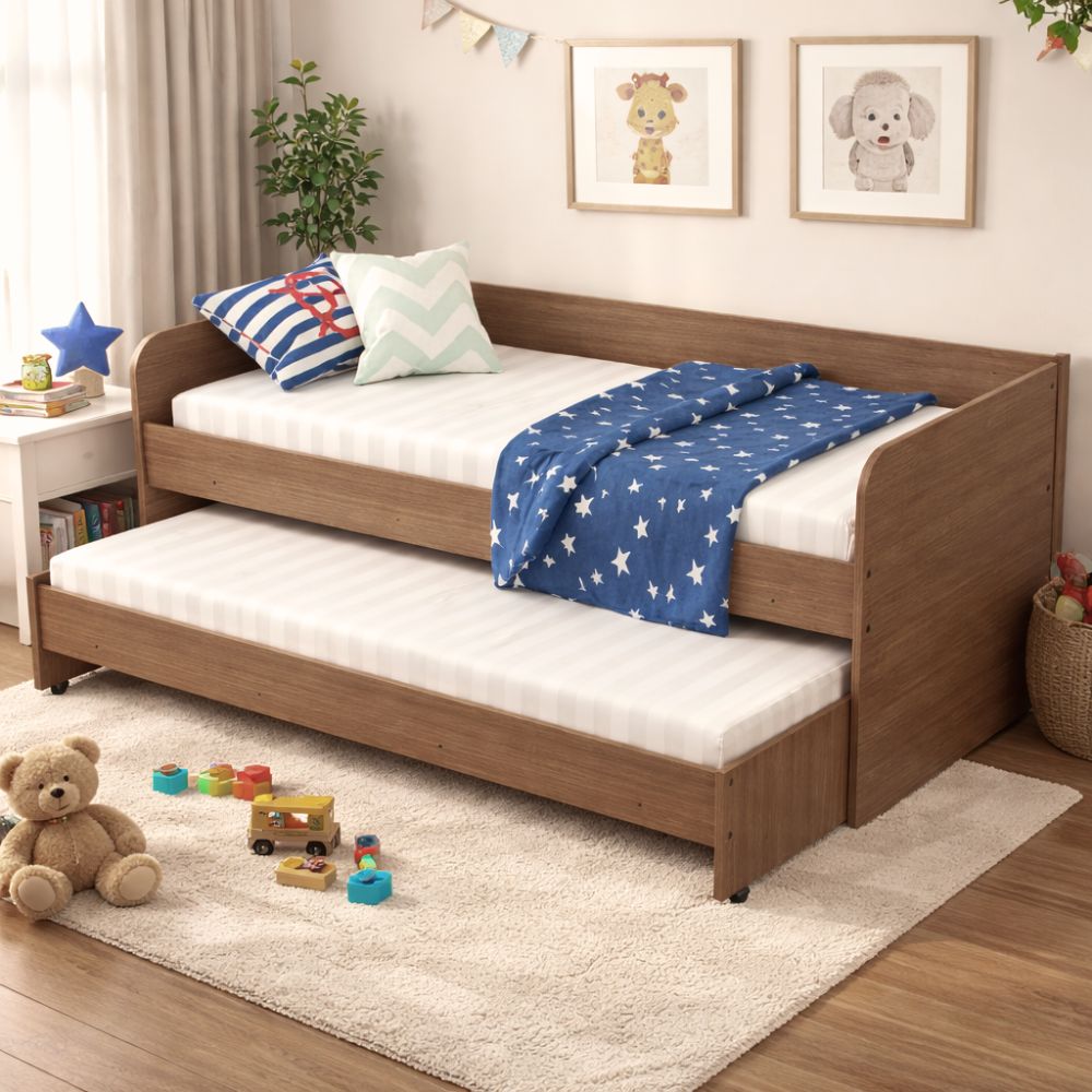 Práctica, compacta y súper funcional para optimizar el espacio ✨ La cama nido Mosconi en color Carvalho Mezzo permite tener dos camas en el espacio de una, con una segunda cama inferior que se guarda fácilmente debajo de la principal.