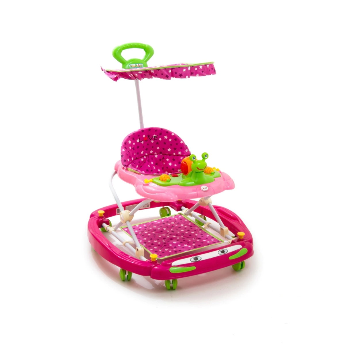 El andador Love 7018 es mecedor y andador en uno, con tablero musical, capota y altura regulable para los primeros pasos de tu bebé.