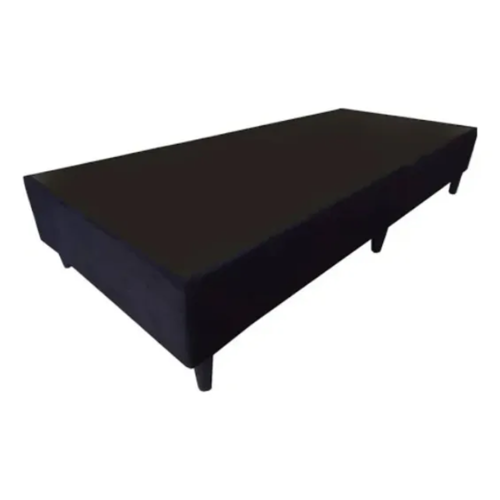 Base sommier cómoda y resistente, ideal para colchones de plaza y media. Tapizado en pana negra que brinda un diseño moderno y elegante para el dormitorio.
