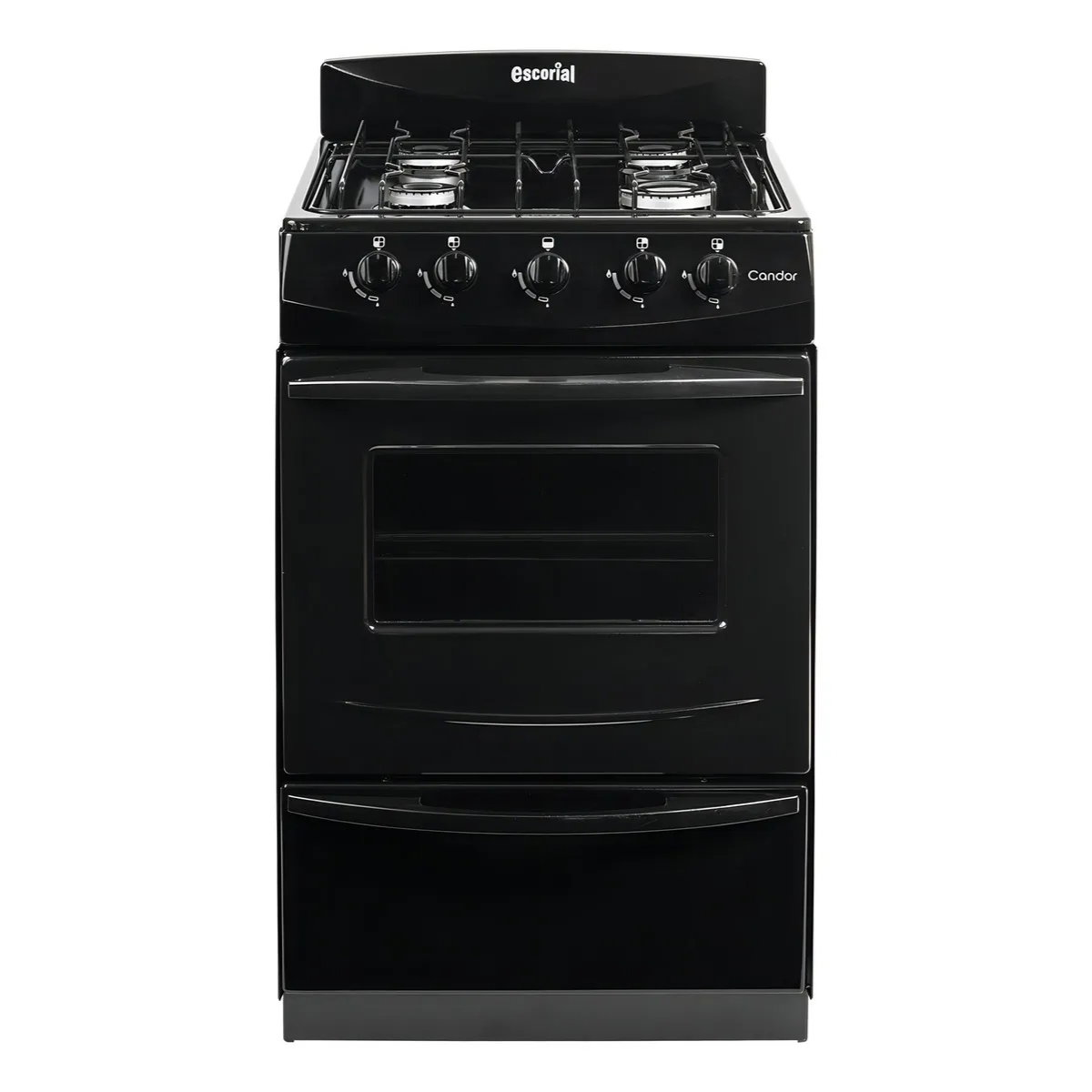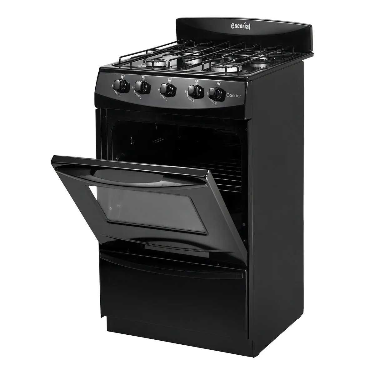 La cocina Escorial Candor negra de 50 cm es compacta, ideal para cocinas pequeñas y funciona con gas envasado.