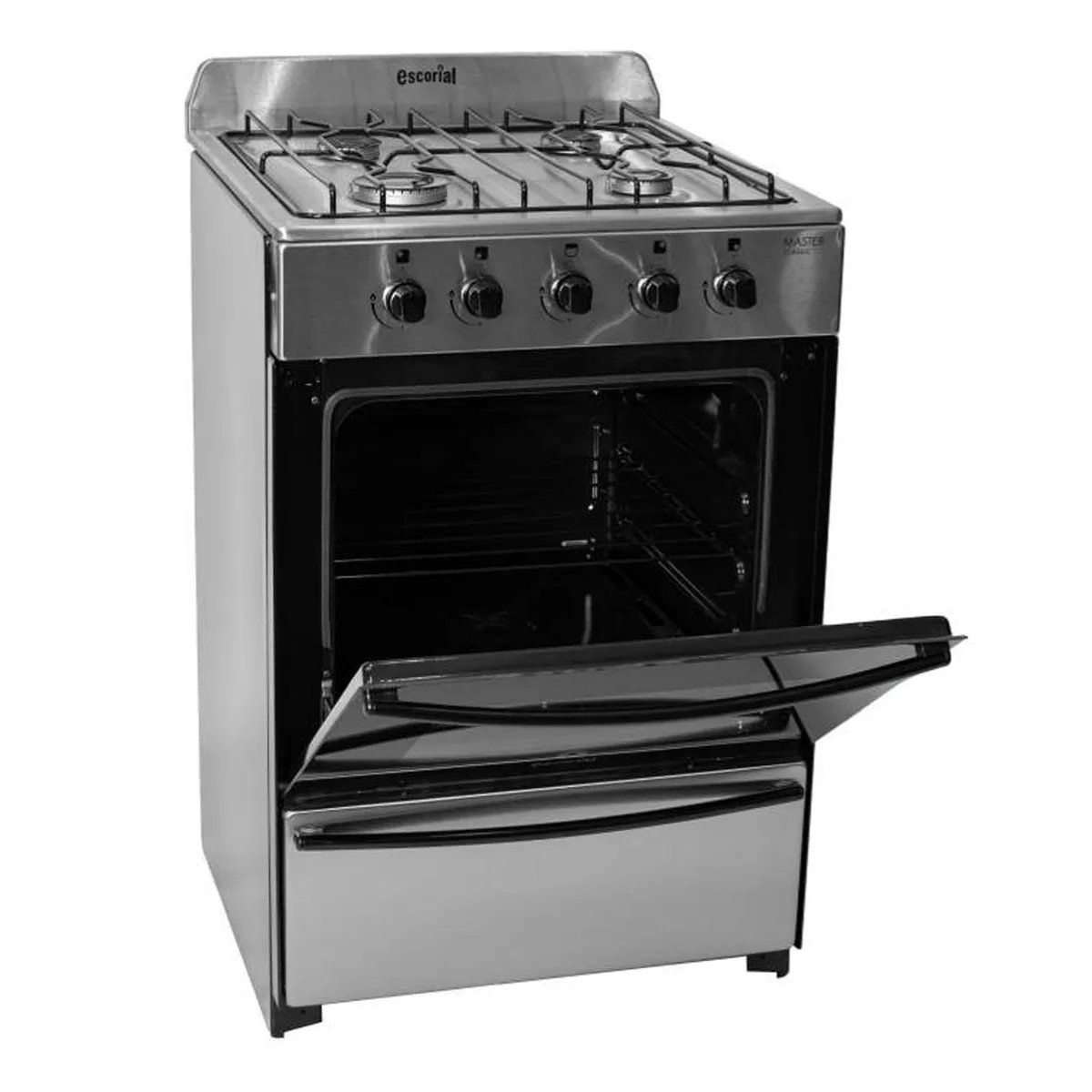 La cocina Escorial Master Classic en acero inoxidable de 56 cm combina diseño elegante y funcionalidad para gas envasado.