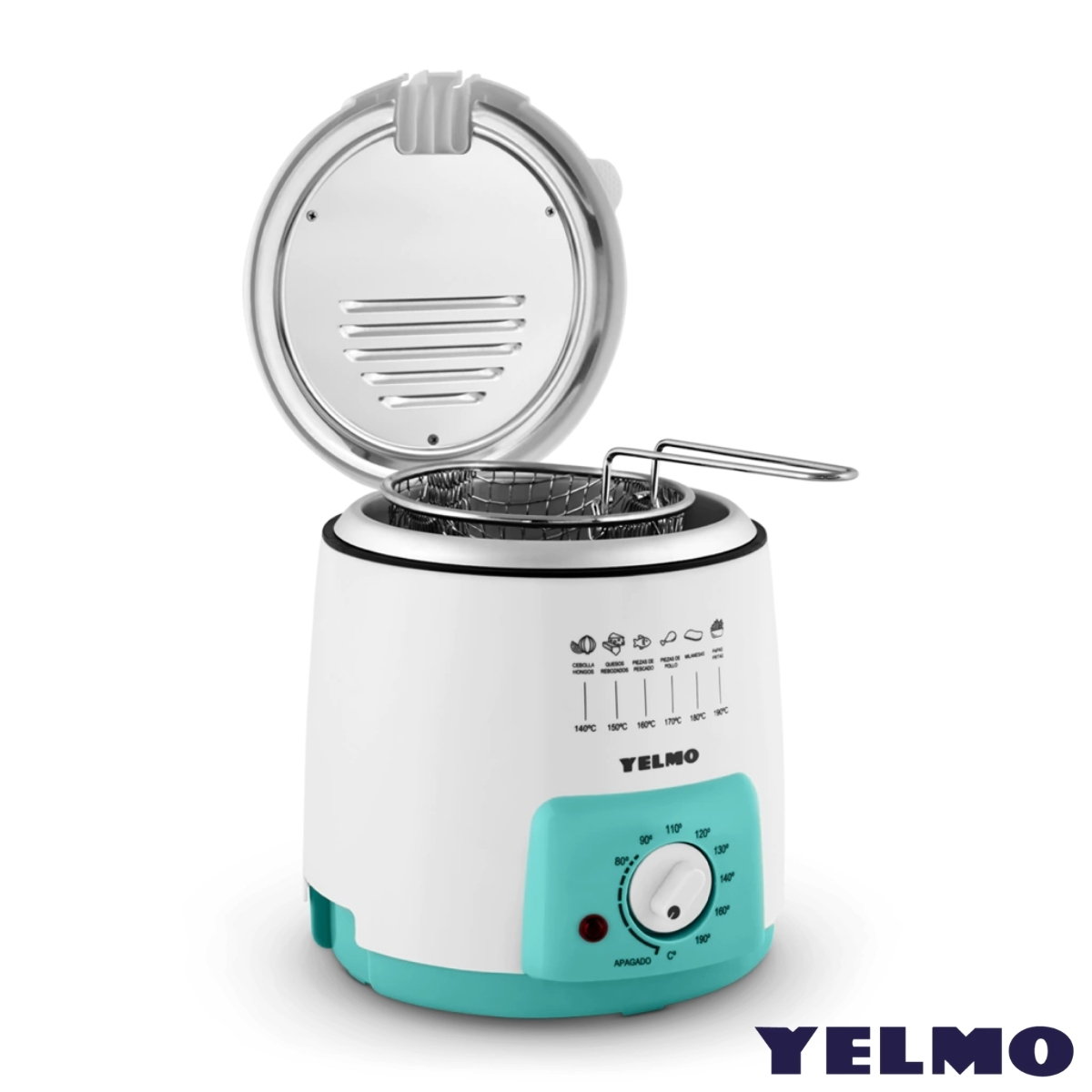 Freidora eléctrica compacta, ideal para frituras rápidas con control de temperatura.