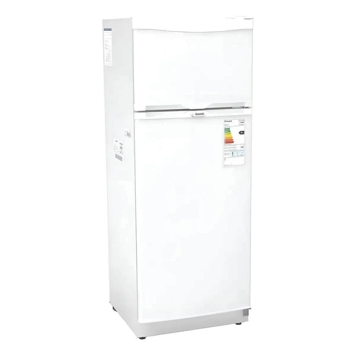 Heladera con freezer Bambi de 330 litros fabricada en Argentina. Eficiencia energética clase A.