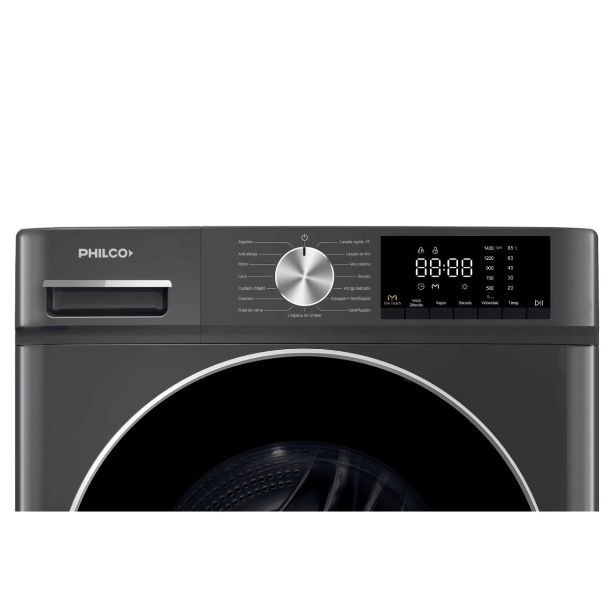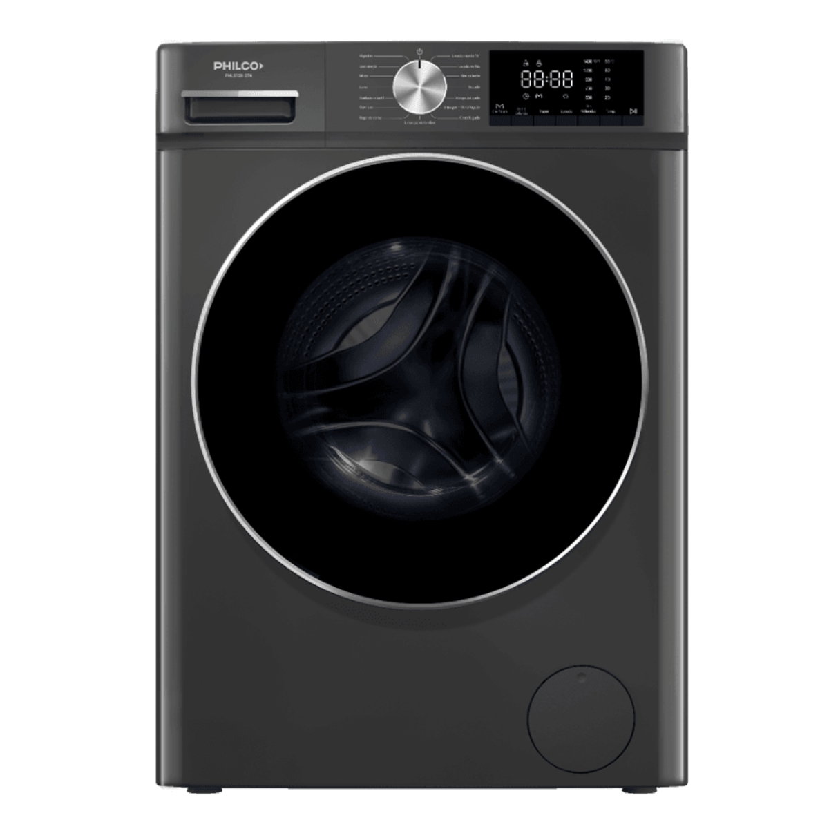 El lavasecarropas Philco PHLS128-2TN lava 12 kg y seca 8 kg, con motor inverter silencioso y eficiente, ideal para la familia.