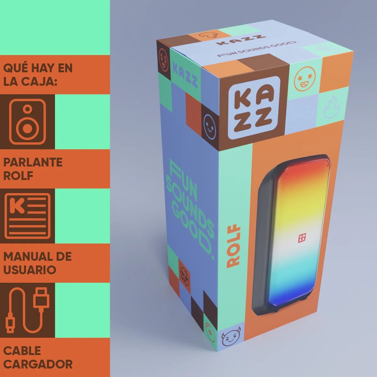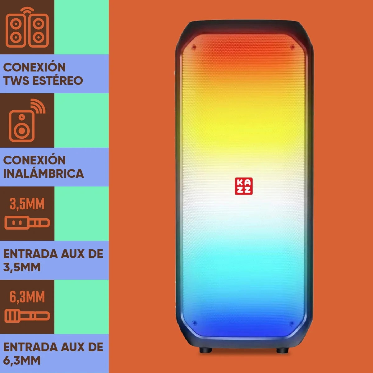 Parlante Kazz Rolf con doble woofer de 8"" para un sonido potente y grave en reuniones y eventos.