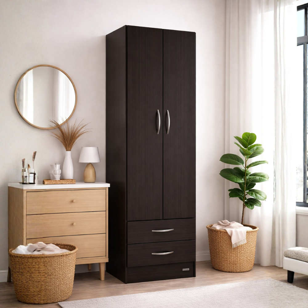 Compacto y funcional, ideal para mantener tu ropa ordenada sin ocupar de más 💪. Incluye barral para colgado y 2 cajones.