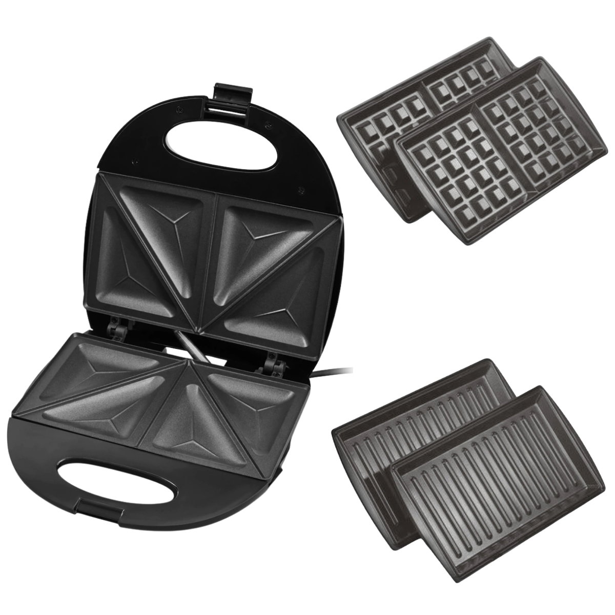 Sandwichera eléctrica Ultracomb 3 en 1 con placas intercambiables. Tostás, grillás y wafleás con un solo aparato.
