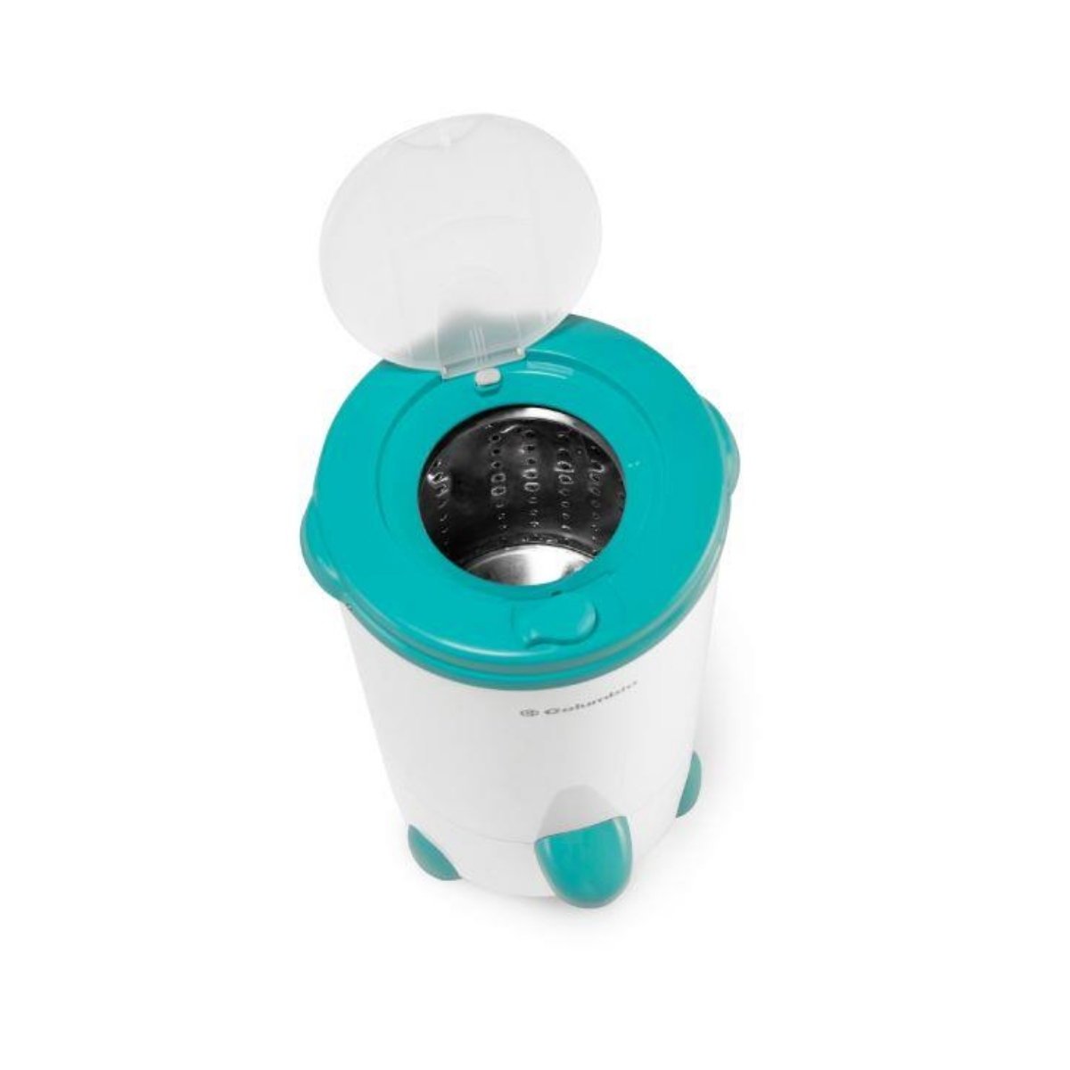 Secarropas centrífugo Columbia de 5,5 kg con tina de PVC en color celeste. Compacto y económico.