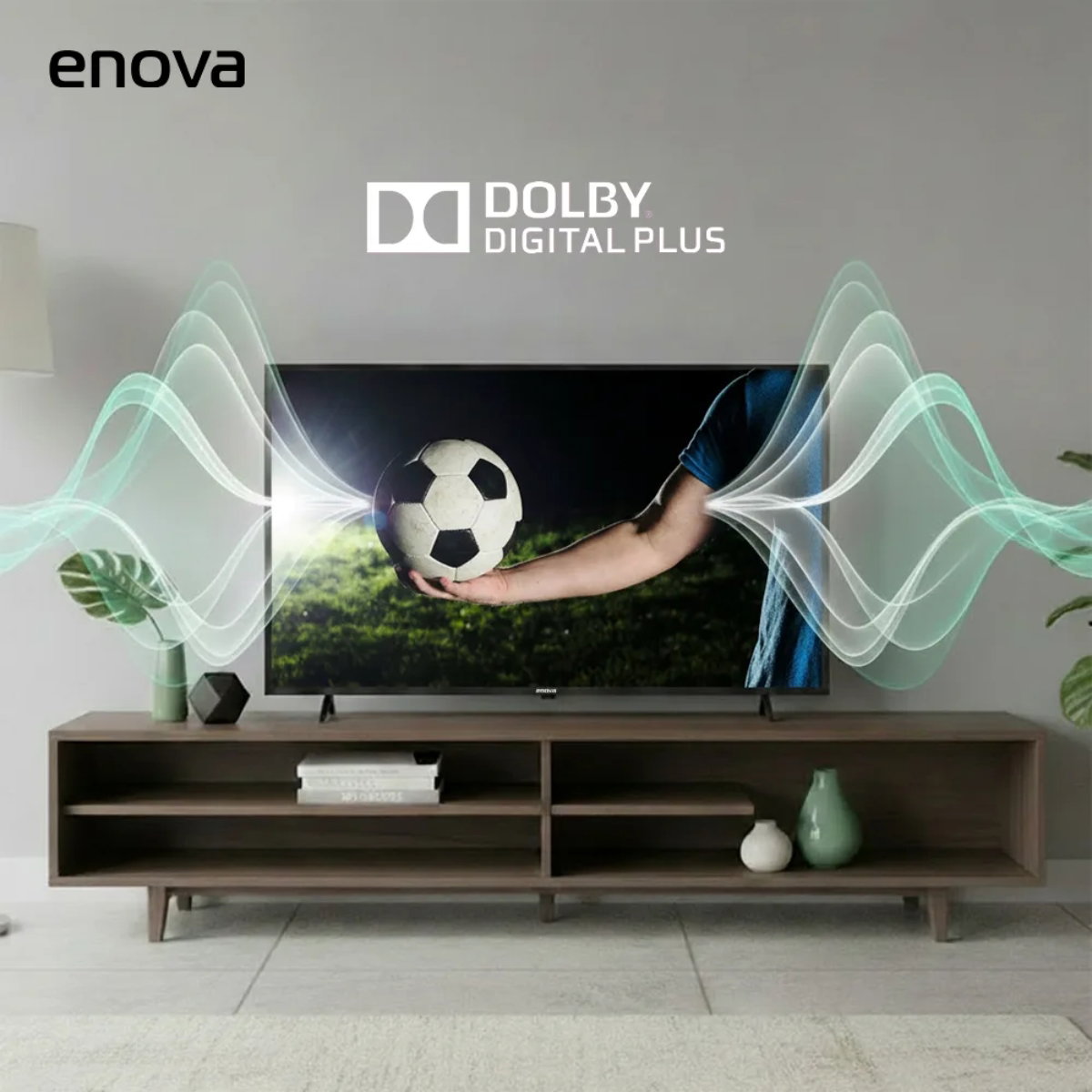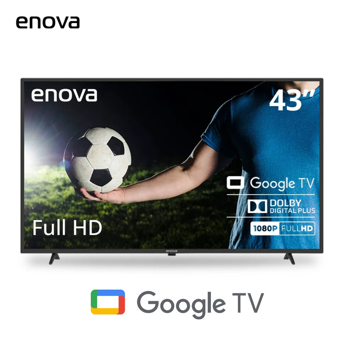 📺 Smart TV Enova de 43 pulgadas con Google TV y resolución Full HD (1920 x 1080 px). Pantalla LED con tecnología HDR10 para colores más vivos y mejor contraste en escenas oscuras. Audio Dolby Digital Plus con parlantes integrados de 8 W.