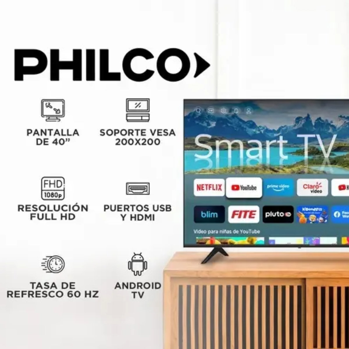 El Philco PLD40FS23CH es un Smart TV de 40 pulgadas con Android TV para acceder a todas tus apps favoritas.