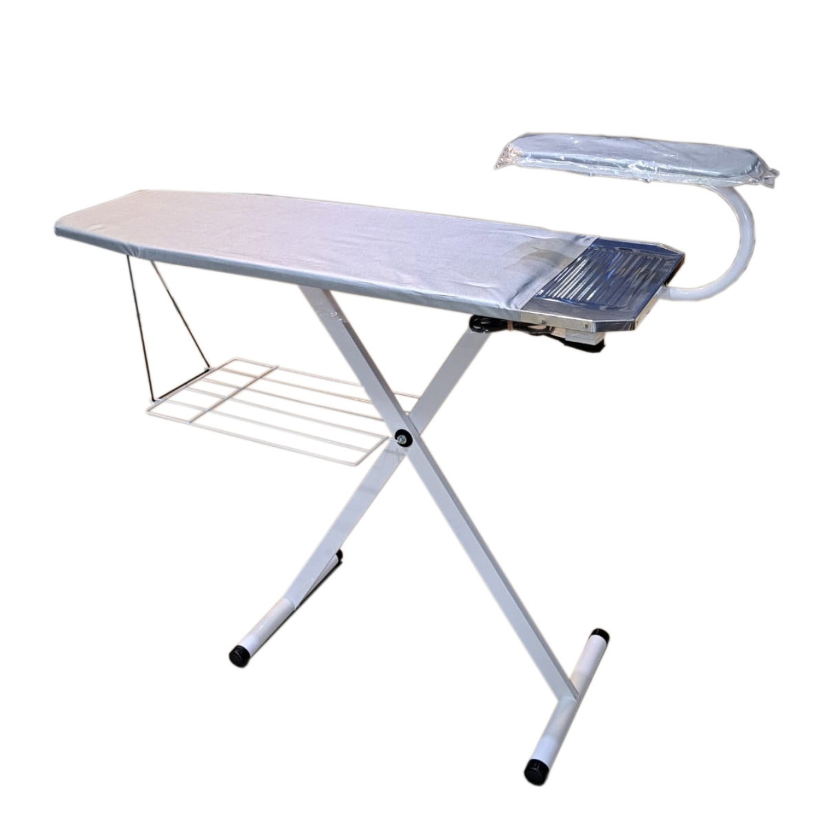 La tabla de planchar EME Maxi Aluminizada tiene las mismas prestaciones que la Regulable, pero con funda aluminizada que refleja el calor para planchar más rápido y con menos energía.