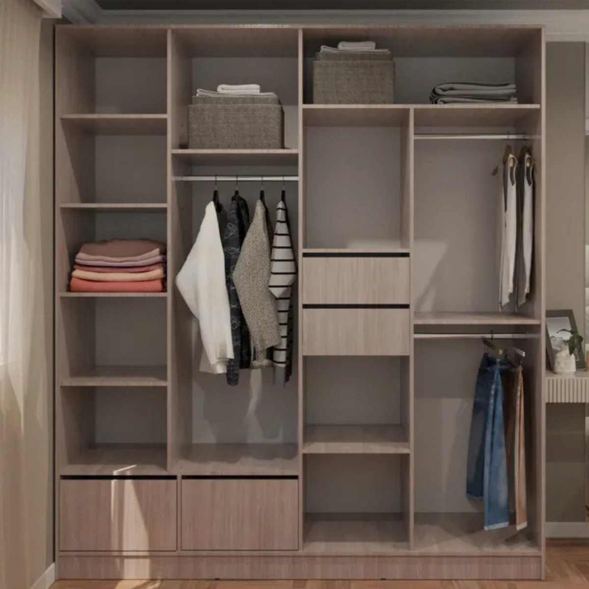 Vestidor premium de 2 metros de frente en color Jacaranda. Amplio espacio de guardado con múltiples puertas, cajones y estantes.